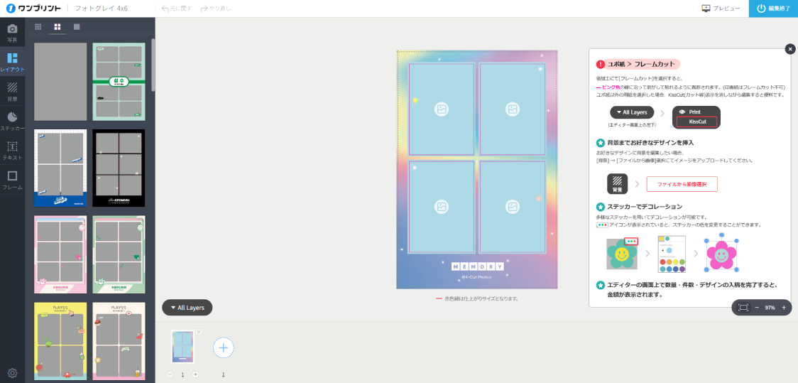 無料で敵強させて頂いてるテンプレートやデコレーションステッカーなどを用いて簡単にオリジナルのデザインにてご注文が可能です。