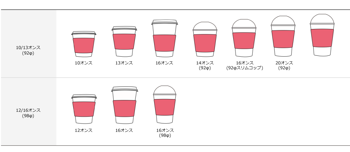 - 紙コップの対応サイズ目安* ご注文前に必ずご確認ください。