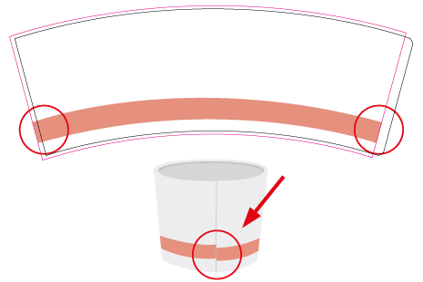 - ※ 切れてはいけない文字や絵柄は、ステッチ線より3mm以上内側に配置してください。