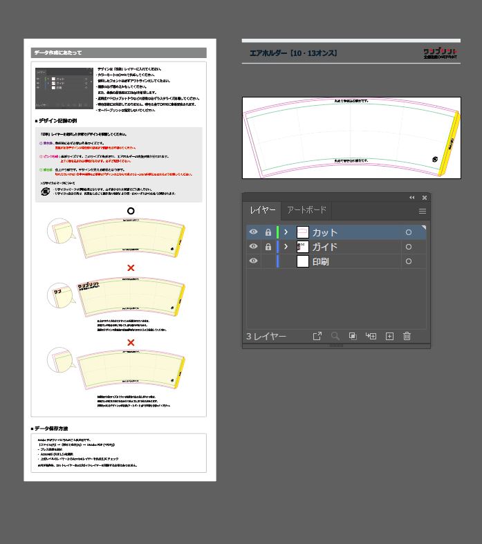 10/13オンス兼用、12/16オンス兼用サイズ別に100個以上のテンプレートが用意されています。