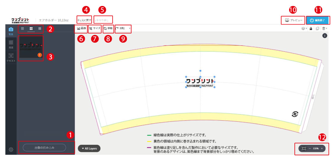 - ⑩ 商品の仕上がりイメージを確認できます。
