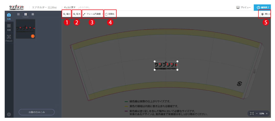 - ① 画像を縮小できます。※元の表示サイズより小さくすることはできません。