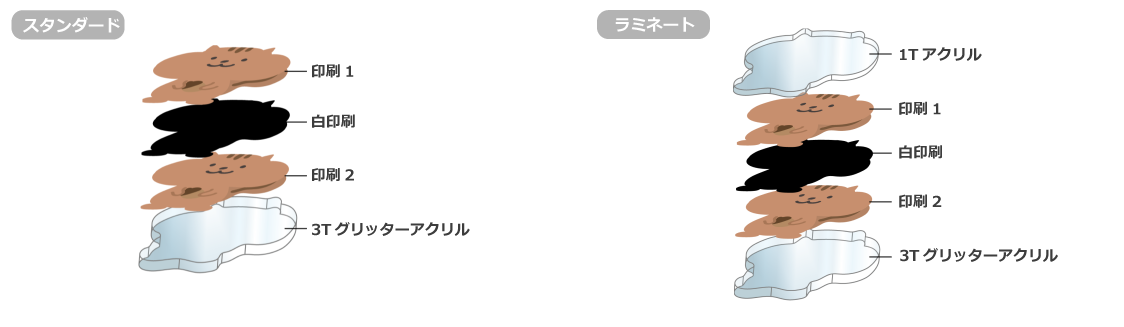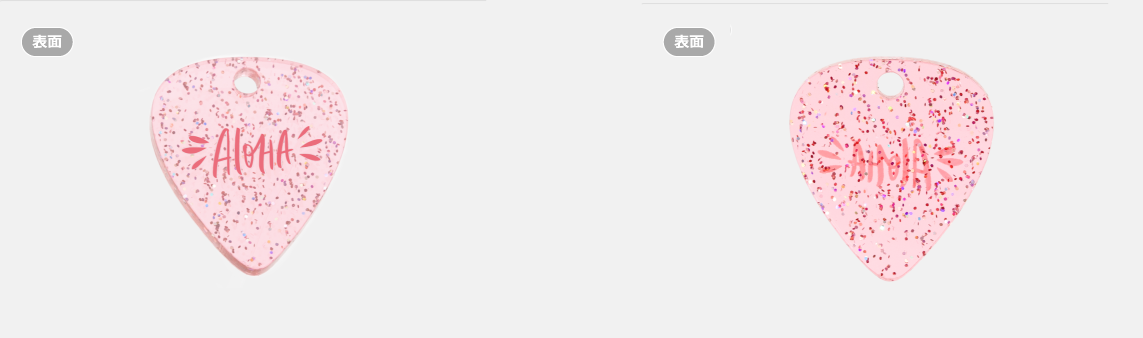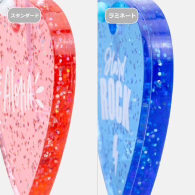 光の角度によってキラキラと輝き、オリジナル性の高いアクリルキーホルダーが製作できます。