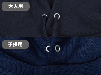 子供用120cm~150cmは安全を考慮しフード紐がありません。