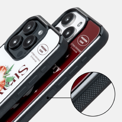 PC/TPUの素材を使用しています。使用時の衝撃を緩和し、側面に滑り止めがついています。スマートフォンを安全に保護してくれます。印刷面にあたる裏面はミラータイプで、鏡のように反射して見えます。