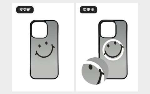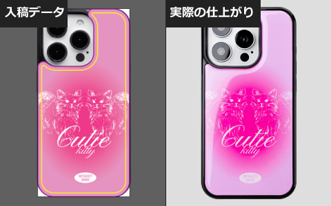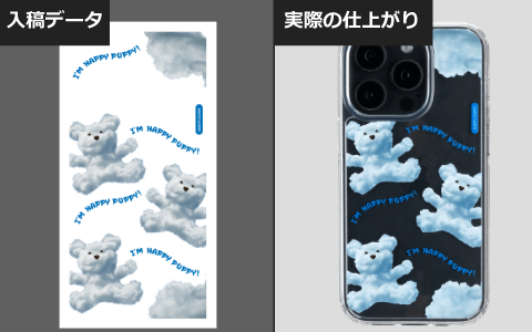 - ※ データの背景が透過されている場合はその形どおりに、透過されていない場合は印刷領域全体に白印刷が入った上でデザインが印刷されます。