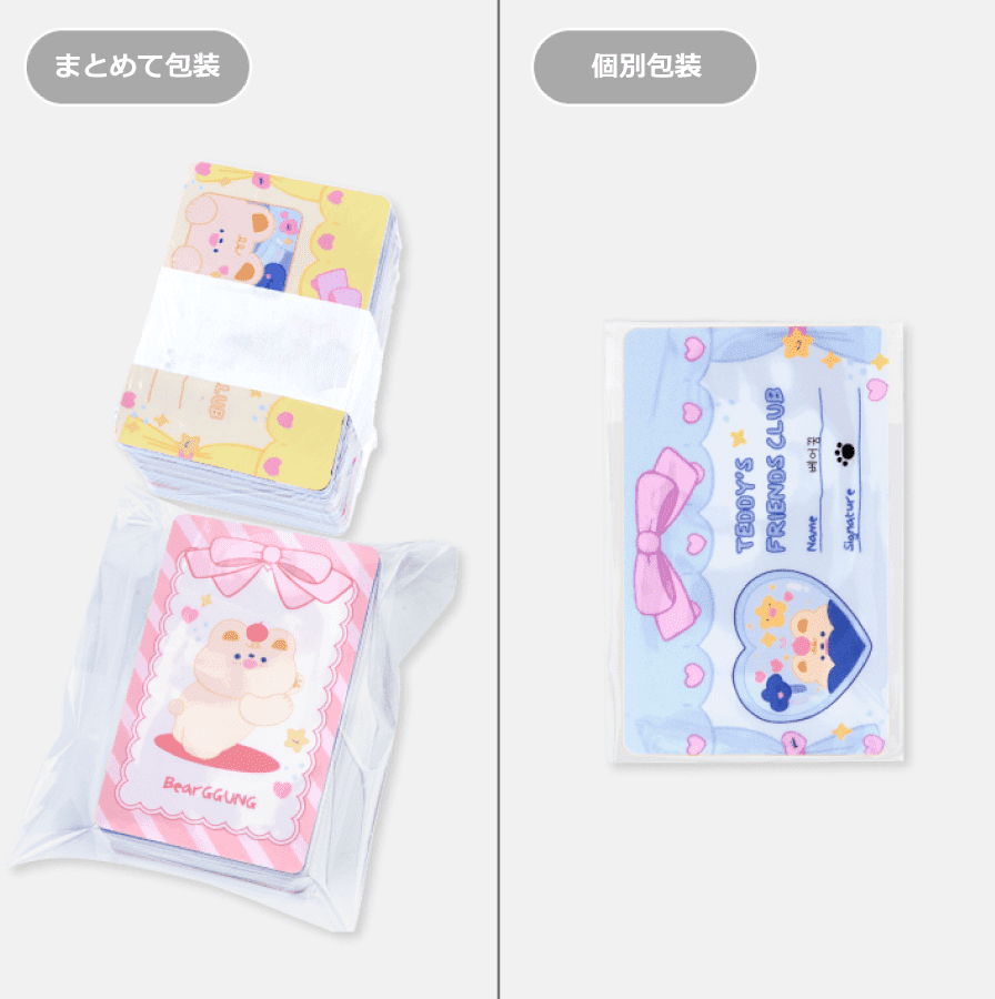 - ※個別包装をご選択時、透明のOPP袋に1枚ずつ入れます。