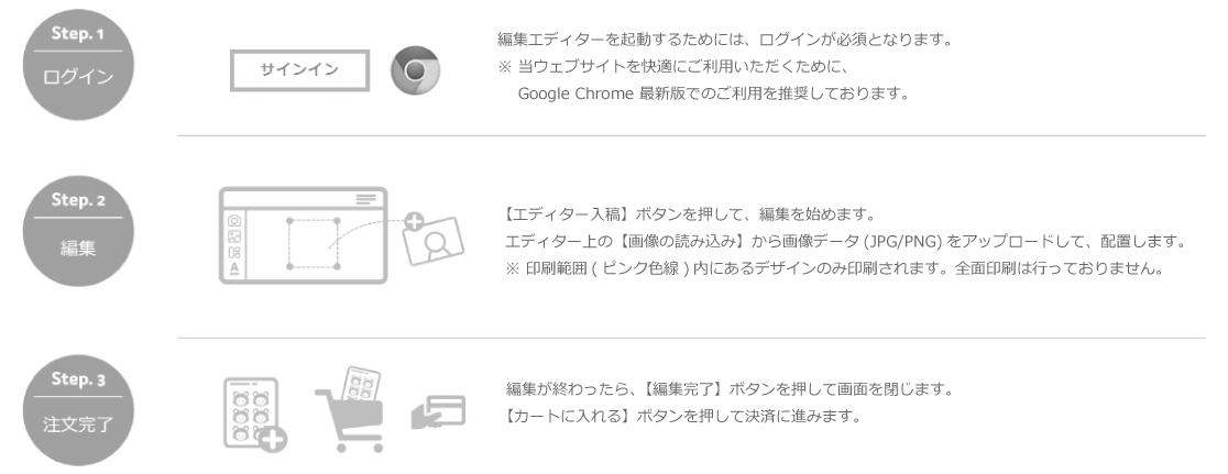- 問題のないデータのご入稿とご入金の確認がとれ次第、受付完了とさせていただきます。
