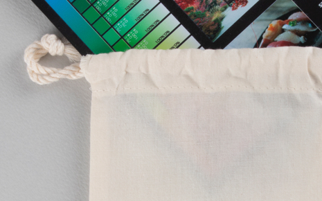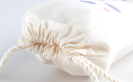 - アイボリーのコットン生地で製作され、柔らかくサラサラとした質感とナチュラルな風合いが魅力のミニ巾着袋です。