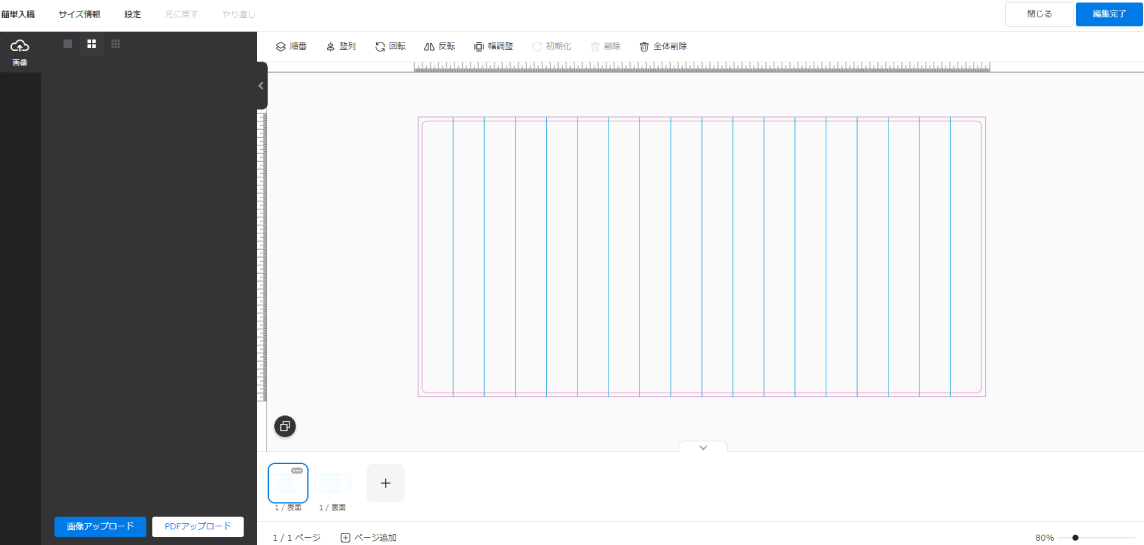 - ※ 注文画面で入力するデザイン件数はエディター画面上にそのまま反映しません。
