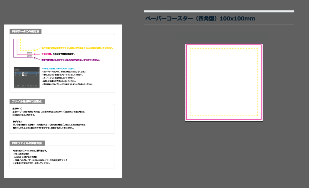 材質案内表面の上質紙に印刷し、1.5mm程のクッション紙と合わせた合紙のコースターです。紙材質のため非常に軽く、 使い捨てとしてイベントや行事での活用に適しています。 材質は硬くしっかりしており、 デコレーションカードやインテリア小物としてもおすすめです。