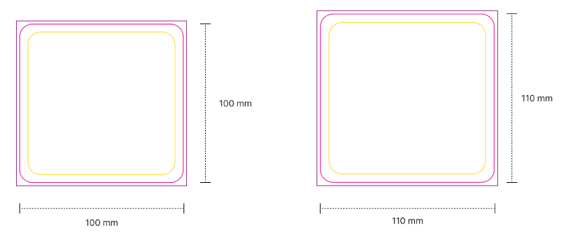 片面印刷、自由なデザイン デジタル印刷にてフルカラー対応、 印刷は片面のみとなります。四角型/丸型/角丸型の規定サイズからお選びいただくか、 サイズ設定可能な自由型でオリジナルサイズも可能です。