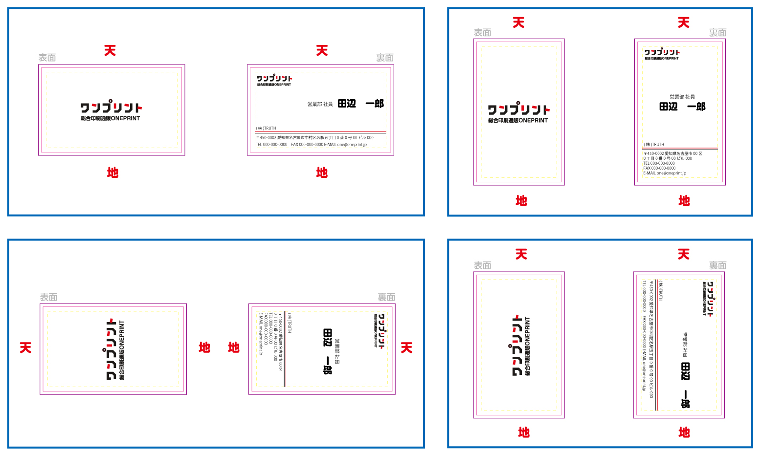 - 両面印刷の場合、データ作成の際に必ず「天・地」を合わせてください。