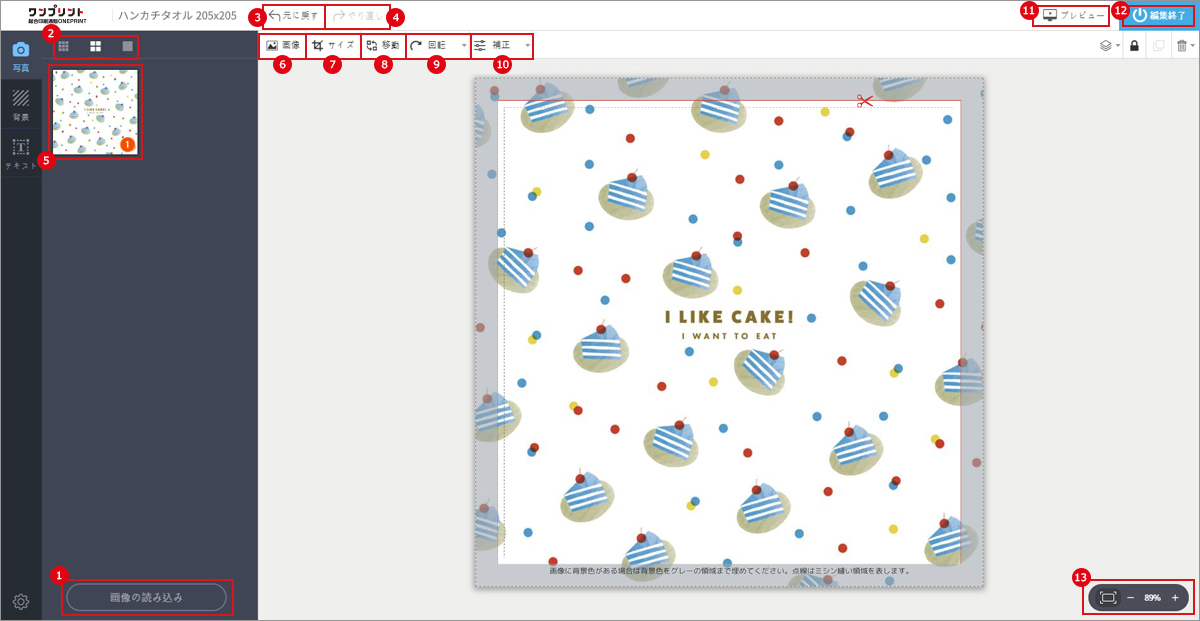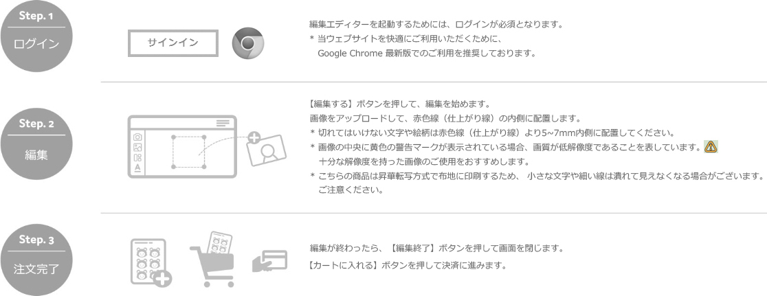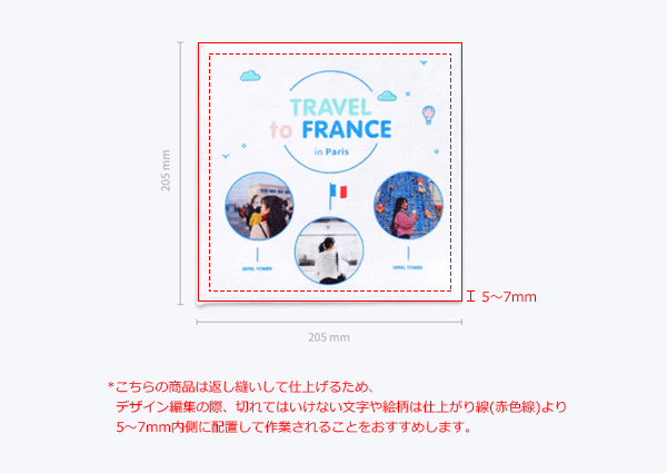 - ・紙に直接印刷するのと違ってズレが発生しやすく、デザイン位置が最大5mm程度ずれる可能性があります。