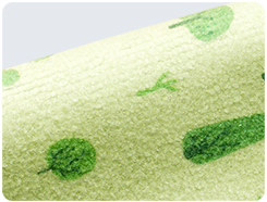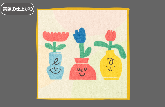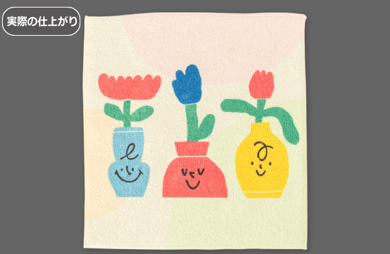 - ・若干毛羽立ったタオル地の表面に印刷するため、毛羽の根本に白残りが生じ、商品を曲げたり伸ばした時に