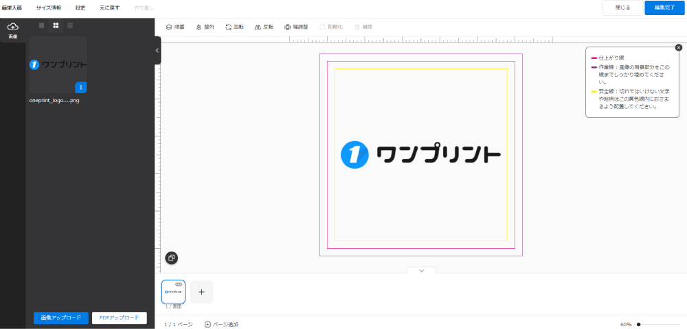 - ※切れてはいけない文字や絵柄は黄色線の安全領域内におさまるよう配置してください。